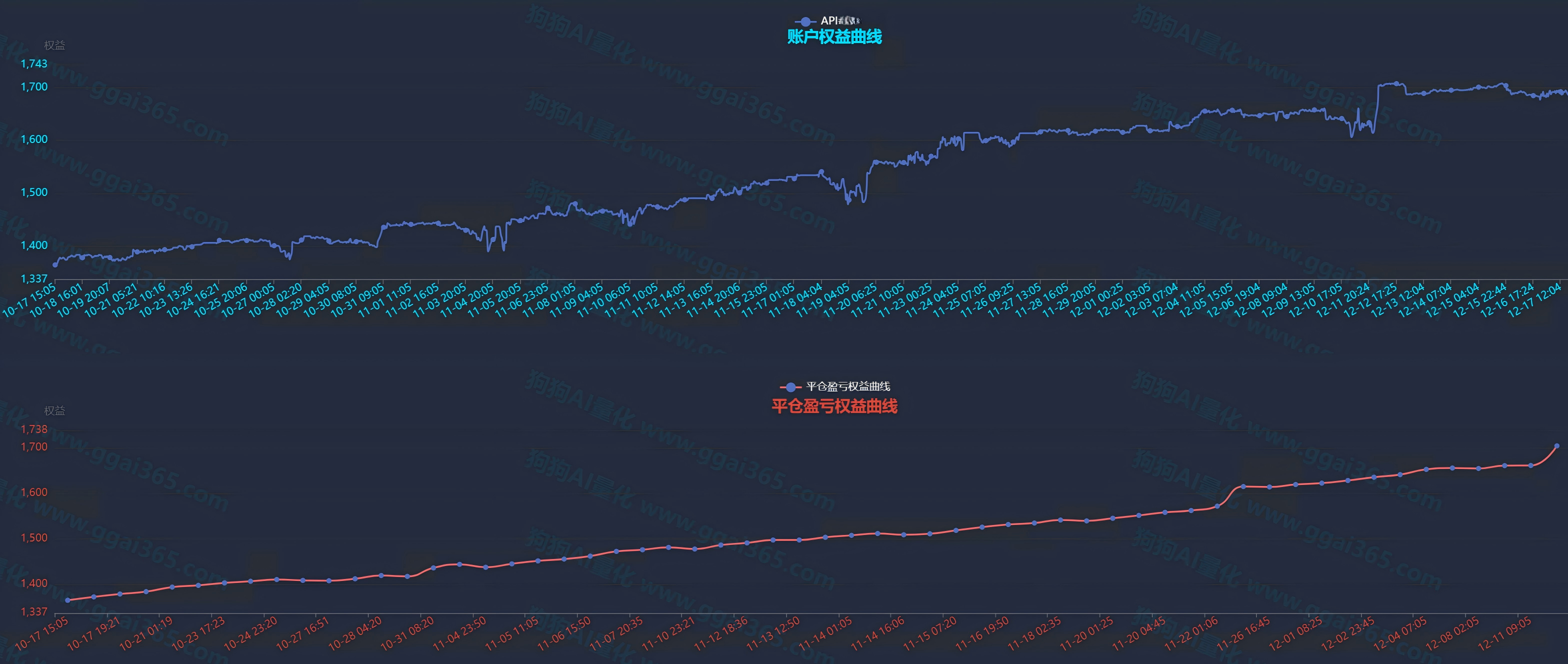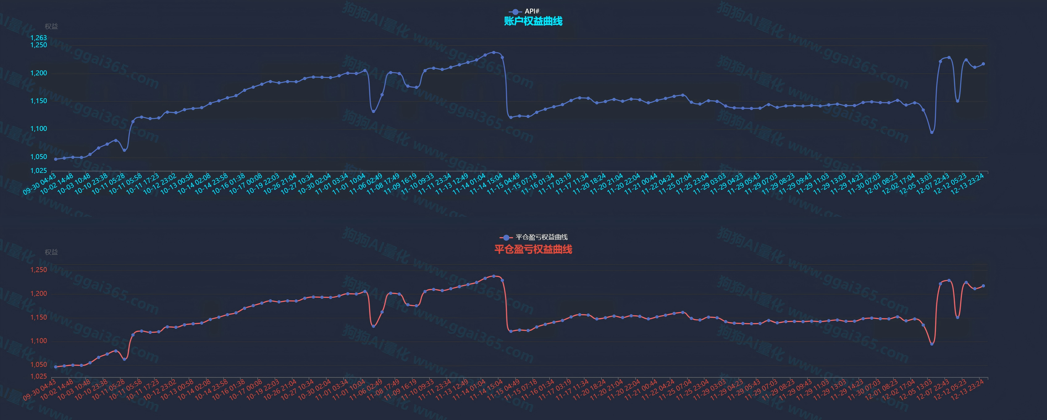 The profit on the top chart is about 300, and the profit on the bottom is 400, but the above chart has not been withdrawn. The computing power is charged separately and has not been withdrawn from the account. The chart below shows that the profit has been withdrawn from the account. In the end, you will find that the curve below is particularly ugly and you can't make a display number at all. So if it is for display and you want to use your account to attract more users, don't withdraw cash. Or you can get a few more accounts, some accounts will be used for display, and the money earned from the remaining accounts will be used to provide computing power for the display accounts.